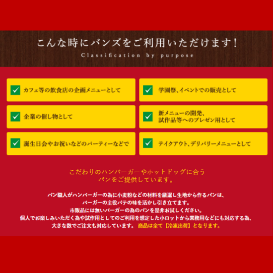 ¥«¥Õ¥§¤Î¥á¥Ë¥å¡¼¤ä¤´ÅöÃϥС¼¥¬¡¼¤Ê¤É¤Î¥¤¥Ù¥ó¥È´ë²èÈÎÇäÍѤˡ¢¥Ñ¥ó¿¦¿Í¤¬¾Æ¤¤¤¿¥Ð¥ó¥º¤ÇËܳÊŪ¤Ê¥Ï¥ó¥Ð¡¼¥¬¡¼¤ò¤É¤¦¤¾¡£ÉÔɬÍפÊÌ£ÉÕ¤±¤Ê¤É¤Ï°ìÀÚ¤·¤Æ¤ª¤ê¤Þ¤»¤ó¤Î¤Ç¡¢¶ñºàËÜÍè¤ÎÌ£¤ò¼ÙË⤹¤ë¤³¤È¤Ê¤¯ÈþÌ£¤·¤¤¥Ï¥ó¥Ð¡¼¥¬¡¼¤¬³Ú¤·¤á¤Þ¤¹¡£